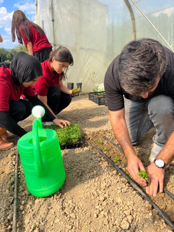 Okulumuzun seralarında yeni sezon hazırlıkları tüm hızıyla devam ediyor. Öğrencilerimiz, öğretmenlerimiz ve misafirlerimizin katılımıyla kışlık sebze dikimi gerçekleştirildi.